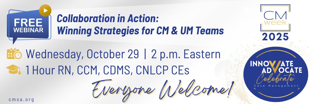REGISTER HERE! Join us for the November 2025 International Special Interest Group networking session! CMSA's International SIG Advisory Panel will lead an interactive discussion about case management across the international […]